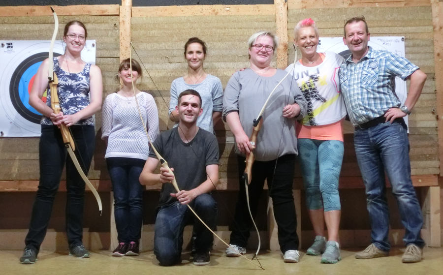 Am 14.09.2015 führte unser Team für Heil- und Pflegeberufe ein Event bei den Erfurter Bogenschützen durch. Als Vereinsmitglied hat unsere Kollegin Rosmarie Ludwig den Abend organisiert. Nach einer kurzen Anleitung durch Trainerin Steffi ging es dann an die Bögen. Geschossen wurde nicht nur auf Scheiben, sondern im Wettkampf auch auf Hörni, das 3D-Eichhörnchen. Beide Mannschaften haben sich wacker geschlagen. Im Café del Sol klang der Abend dann in gemütlicher Runde und bei gutem Essen aus.