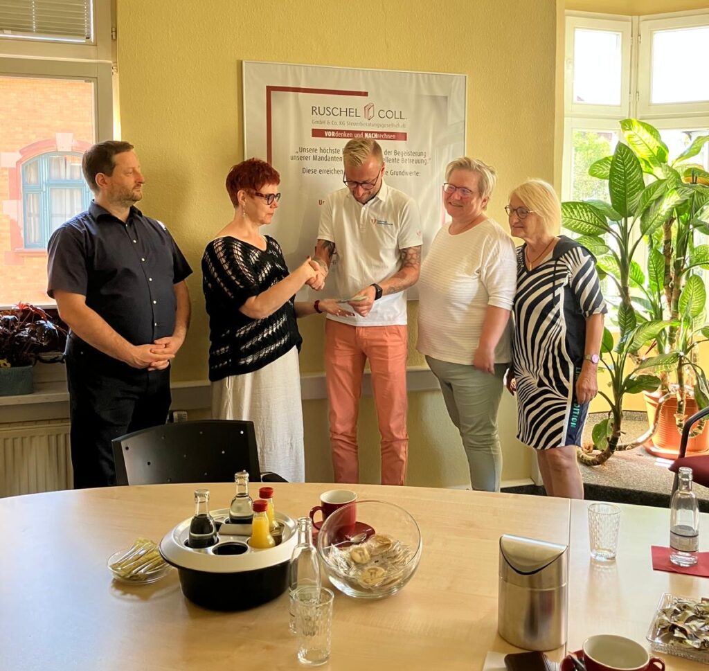 Bereits seit mehreren Jahren unterstützt Ruschel & Collegen die gemeinnützige Arbeit des Kinderhospizes in Tambach Dietharz. Einige Tage nach unserer Jubiläumsveranstaltung konnten wir einen „Spendenengel“ der Einrichtung bei uns im Unternehmen begrüßen und ihm den gesammelten Spenderlös von 300 Euro überreichen.
